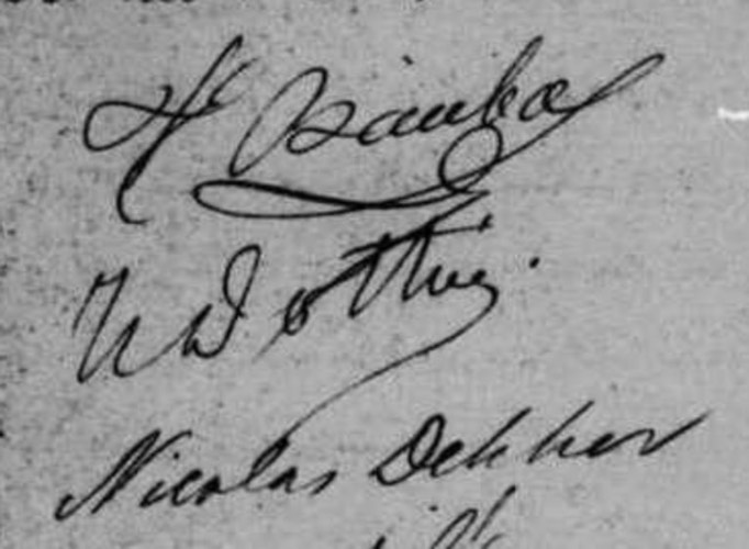 bij huwelijk met HNM Dothée : handtekeningen Fanny Boubal, Henri nicolas marie Dothée en Nicolas Dekker.